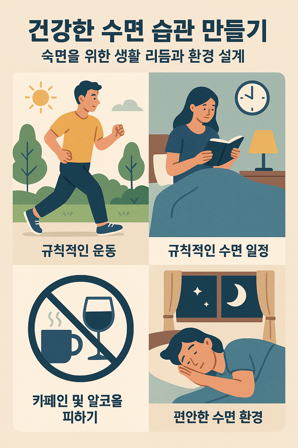 수면은 후순위가 되어선 안 됩니다. 좋은 수면을 위해 생활 리듬과 환경을 설계하는 것은 건강한 삶을 위한 가장 기본적이면서도 강력한 전략입니다. 지금부터는 과학적으로 입증된 수면 습관 형성 원칙과, 일상에서 실천 가능한 루틴을 단계별로 소개하겠습니다.
