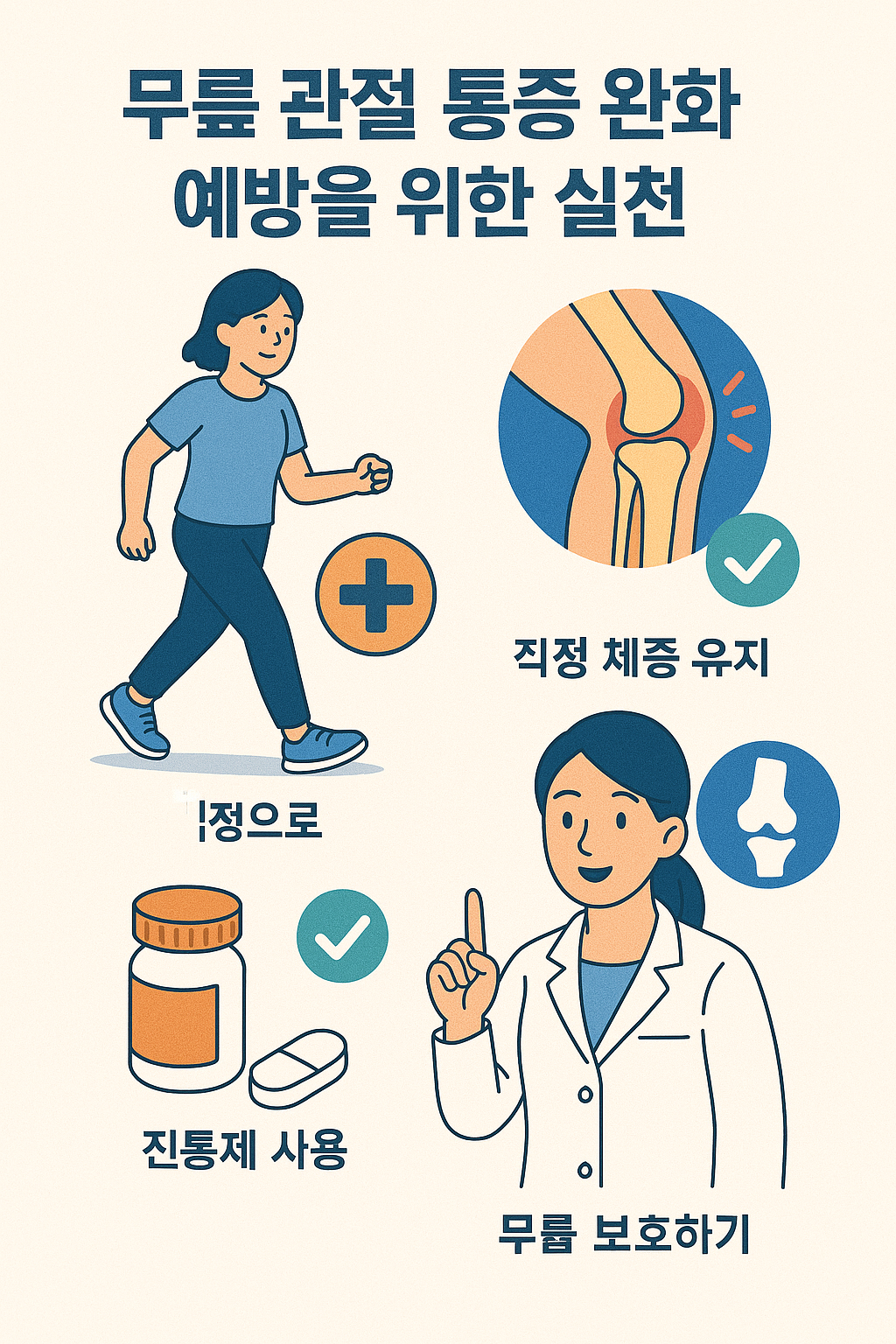 무릎은 체중 부담이 크고 반복적으로 사용되는 관절인 만큼, 통증이 생겼을 때 즉시 조치하고 올바른 관리법을 실천하는 것이 핵심입니다.