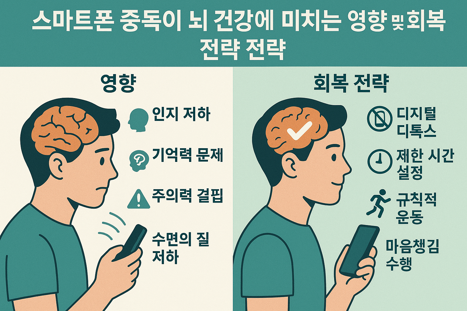스마트폰은 이제 일상에 없어서는 안 될 필수 도구가 되었지만, 과도한 사용은 뇌 기능 저하와 정서 불안정 등 심각한 부작용을 초래할 수 있습니다. 본 글에서는 스마트폰 중독의 정의와 증상, 뇌에 미치는 영향, 그리고 이를 극복하기 위한 현실적인 생활 습관을 안내합니다.